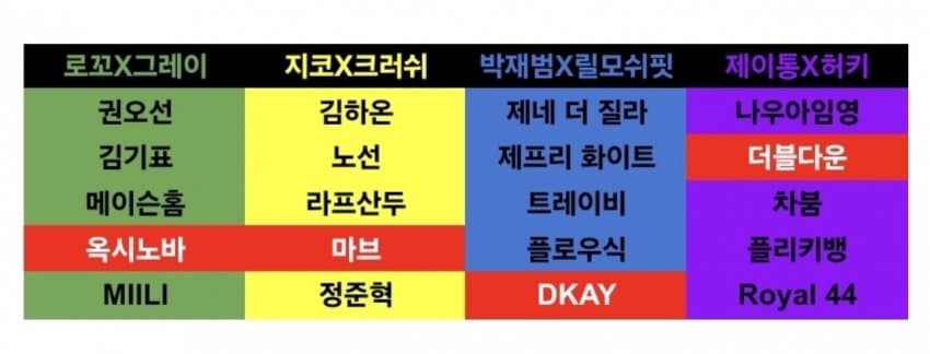 결론적으로 로꼬팀 / 김기표, 제이통팀 / 영슈러 딱 2개만 안 맞았군